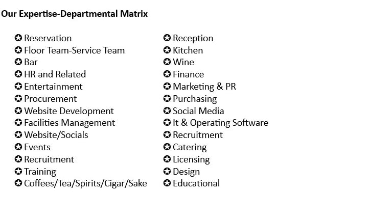 As we have a team with international acclaimed figures who can help develop and enhance concepts, especially within the hospitality industry. Bar and restaurant concepts are indeed essential components of the overall dining and entertainment experience, and a well-executed bar can significantly contribute to the success of a restaurant or hotel