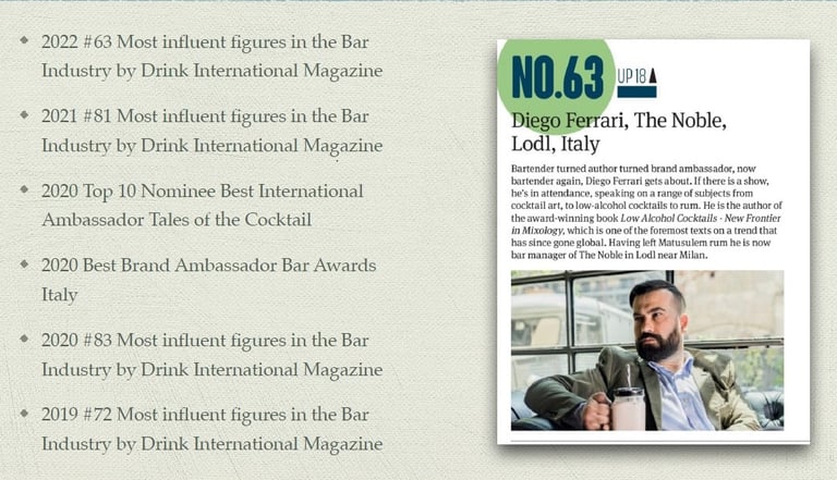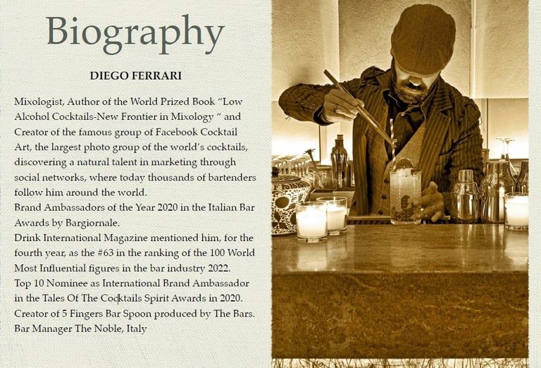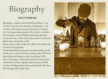 Diego Ferrari is widely recognized as one of the most influential figures in the global bar industry. With his expertise, Eye-Trail can assure you that you can elevate your existing bar concept and cocktail list to new heights, or create something extraordinary from scratch.